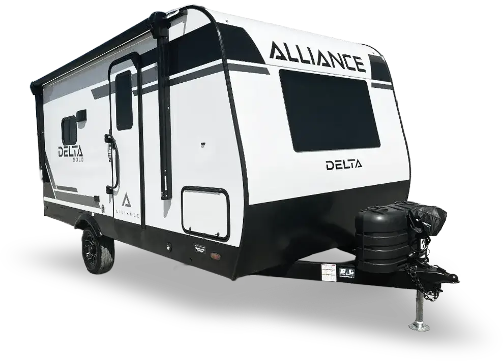 Alliance RV Delta Solo travel trailer ML166 highlights: Overhead Storage 13" Awning Sofa In Slide Out Queen Bed Enter this thoughtfully designed trailer through the 28" entry and step into a space that blends comfort and functionality. At the front, a 60" x 80" queen bed offers restful sleep, complete with a wardrobe at the foot and overhead storage. The center features an L-shaped kitchen equipped with a sink, 2-burner cooktop, overhead cabinets, and a 32-inch TV, while directly across, a 10-cu. ft. refrigerator and a slide out with a 60" jackknife sofa maximize space and convenience. At the rear, enjoy a full bathroom with a 30" x 36" shower, toilet, sink, linen shelves, and additional overhead storage making this compact trailer feel like home wherever you go. Each Delta Solo model is designed to deliver both comfort and convenience in a compact footprint. Inside, you'll find residential-style touches like can-style LED ceiling lights, durable cabinet doors with magnetic catches, and commercial-grade vinyl flooring built to last. On the exterior, practical travel features include easy-access switches for the slide-out and awning, sturdy Step Above fold-out entry steps, and color-coded, numbered wiring for simplified maintenance and troubleshooting.