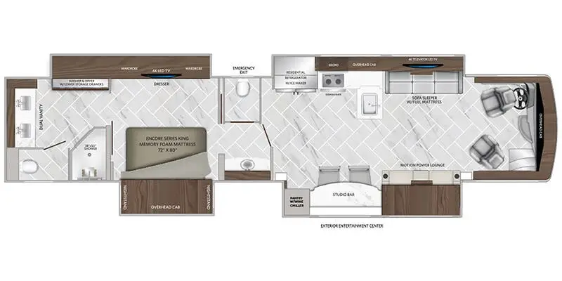 Step into the world of luxury travel with the 2024 American Coach American Dream 45P. This exquisite motorhome is a masterpiece of design and engineering, perfectly tailored for those who crave the ultimate road experience. With a spacious interior that boasts a king-sized Encore Series Memory Foam mattress and a convertible sleeping area, this RV comfortably accommodates up to four guests. The floorplan is thoughtfully designed to include a front living area, center kitchen, and a center bedroom, providing an elegant flow that feels both expansive and intimate. The American Dream 45P is equipped with top-tier amenities that redefine convenience and comfort. Enjoy the ease of convection cooking with a two-burner cooktop, and keep your essentials fresh in the full-size electric refrigerator. The inclusion of a washer and dryer ensures you have everything you need for extended journeys. With a powerful Cummins I6 Diesel Pusher engine and a Freightliner SLM Series chassis, this motorhome offers a robust 605 horsepower and 1950 torque, making it a reliable companion for all your adventures. The 19.7 ft. powered retractable awning invites you to relax outdoors, while the interior's motion power lounge ensures ultimate comfort. Discover the perfect blend of style and functionality with the American Dream 45P. For more details, visit your nearest General RV dealership.