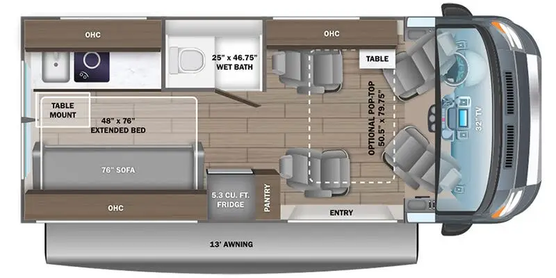 Make van life luxurious with the 2023 Ethos. Equipped with Entegra Coach’s exclusive E-Z Drive™ system, your driving experience may be the best part of your journey. Hellwig® helper springs integrated into the suspension system assist in absorbing impact and dampening road noise. The Firefly Total Coach Control System means best-in-class technology is at your fingertips with the ability to control and monitor everything from lighting to tank levels. Touches of elegance abound, such as European-style, high-gloss cabinetry throughout and decorative window valances with night roller shades.