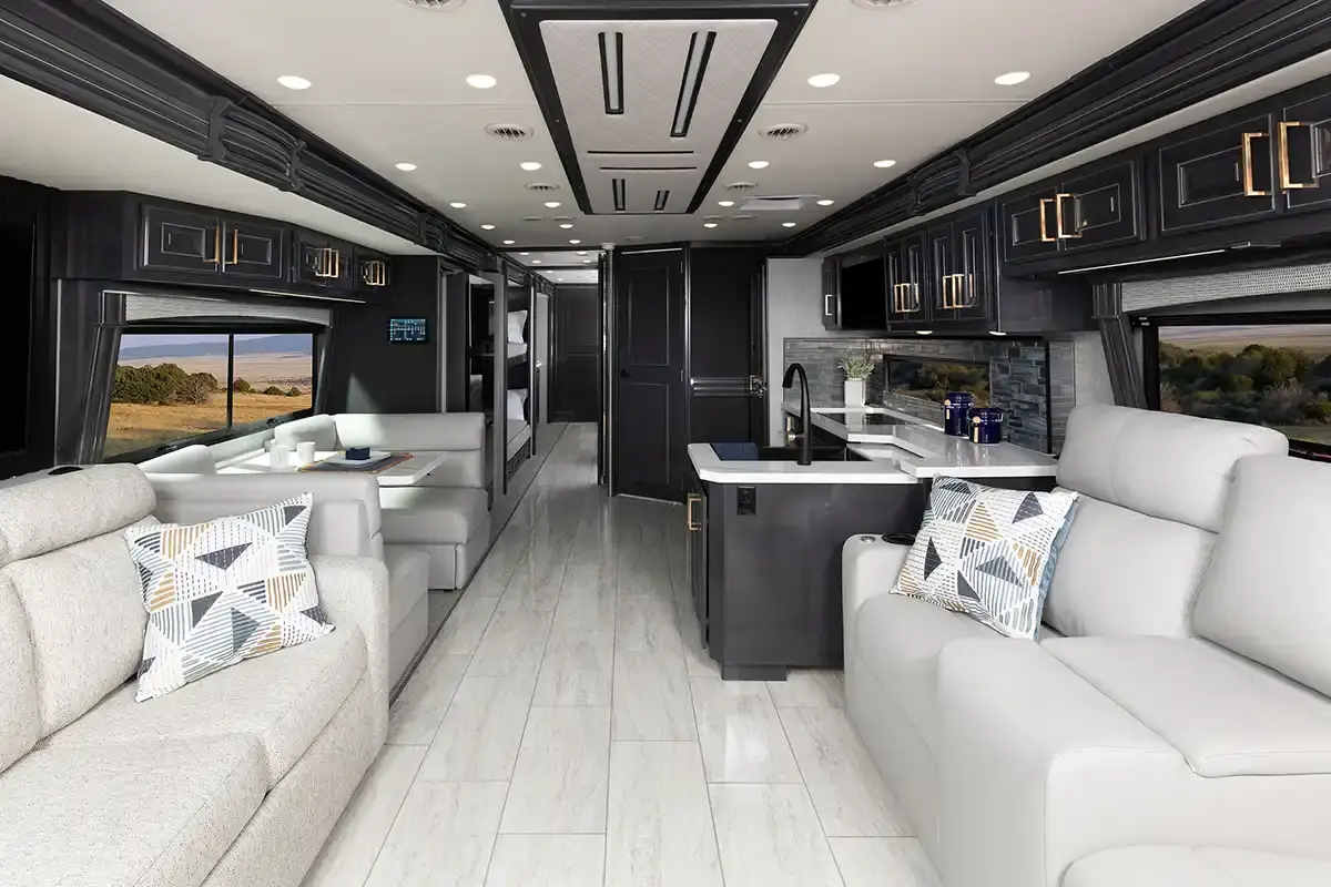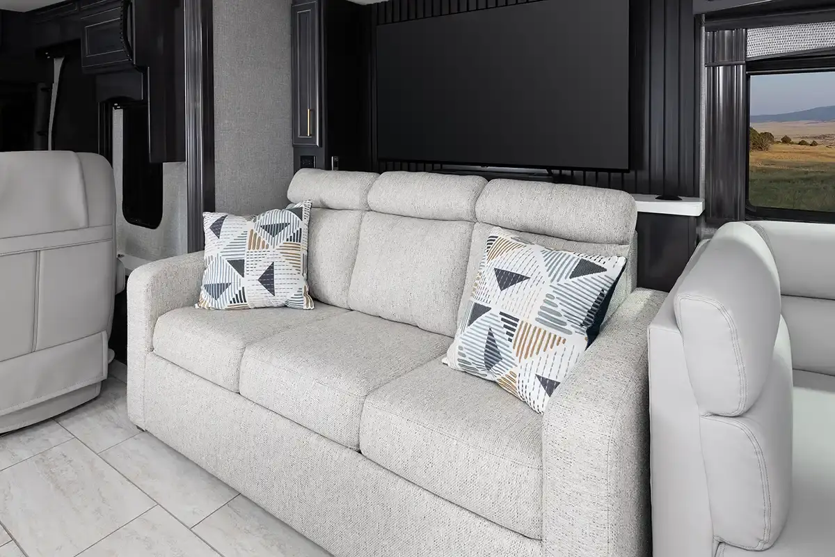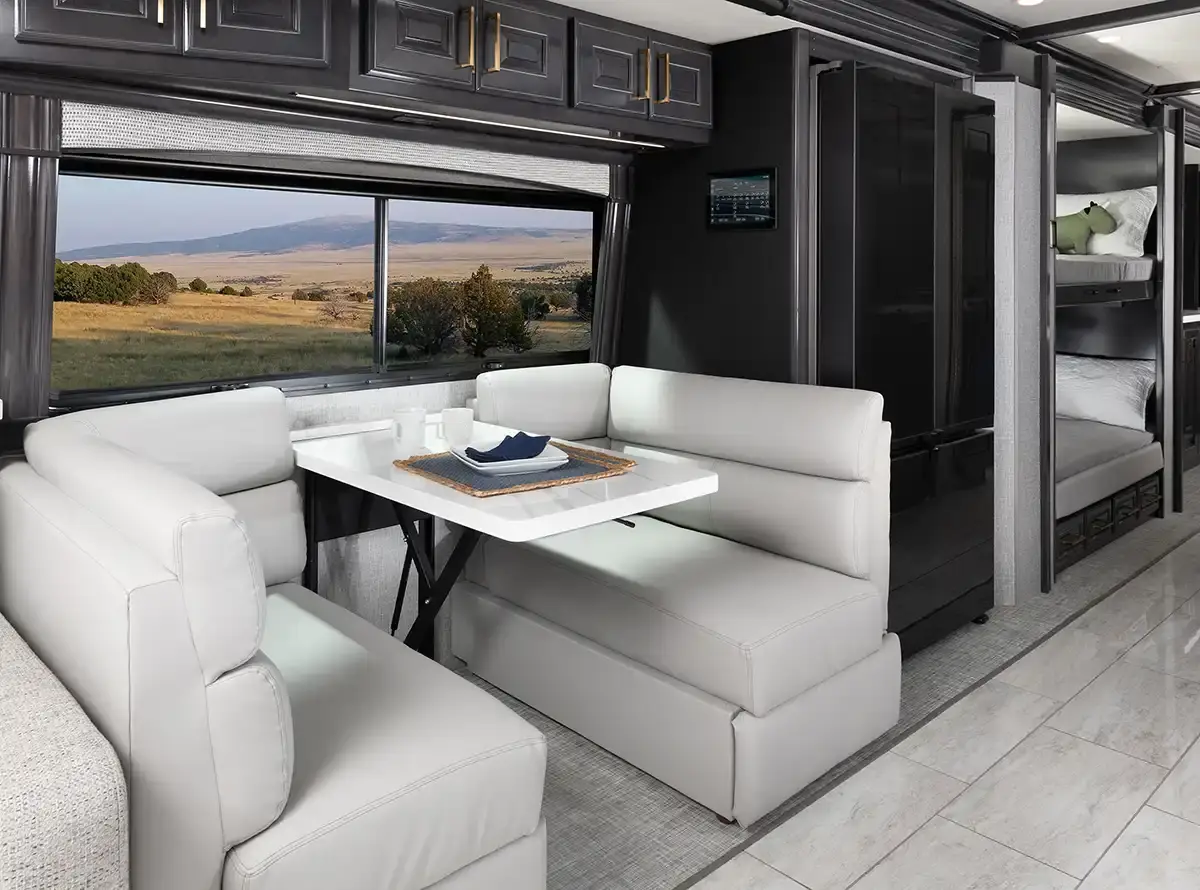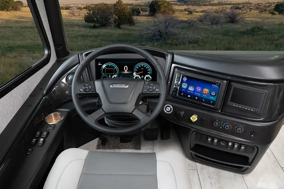 The new Palisade Class A diesel motorhomes by Fleetwood RV define what luxury travel is all about! You will be able to take charge of the open road with the Freightliner XCM chassis, Cummins L9 450HP engine, and durable Freedom Bridge Foundation! Some of the high-end amenities that will set the Palisade apart from the rest are the generous storage spaces both inside and out, enhanced safety features and the Freedom Drive Package, plus stunning tile backsplash and dual bath sinks. The Serenity Series king bed also provides comfort, along with spacious living quarters and additional sleeping spaces for guests. The stand-out features continue outside with automatic hydraulic leveling jacks, basement storage with LED lighting, an exterior service station, and more! Experience the open road like never before in a Palisade Class A diesel motorhome by Fleetwood RV!