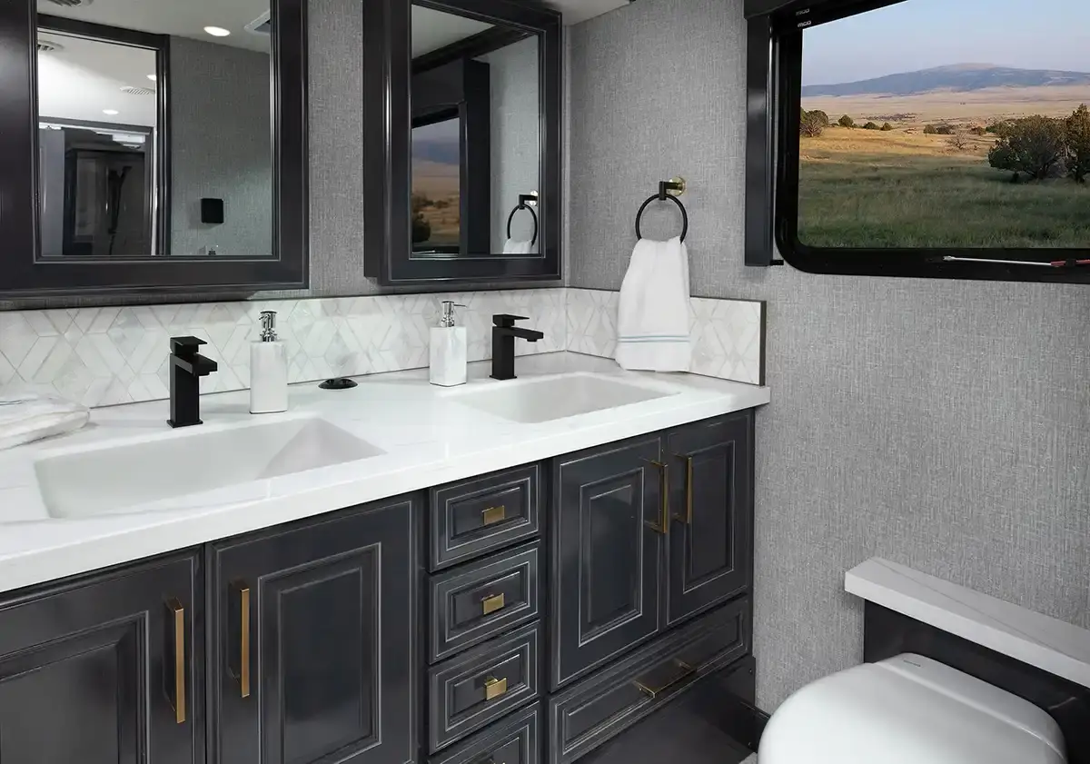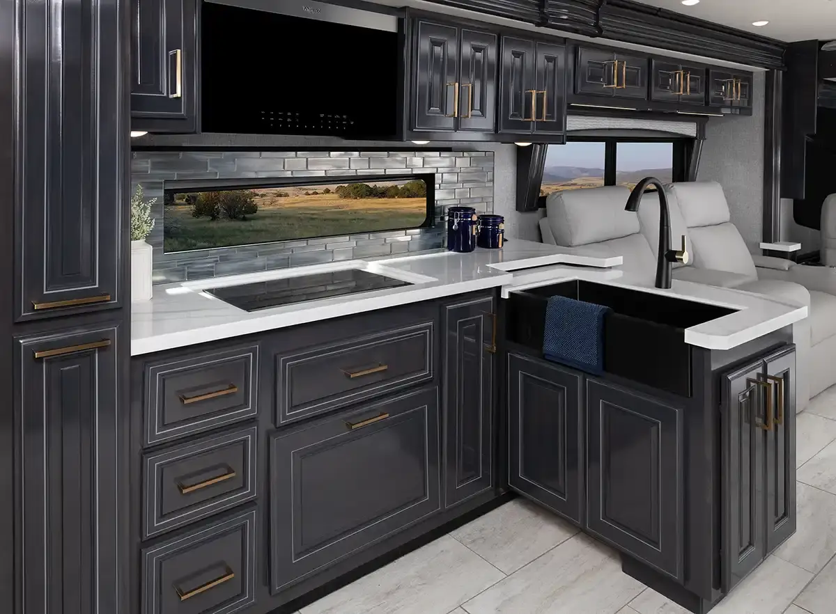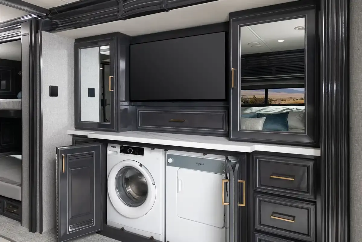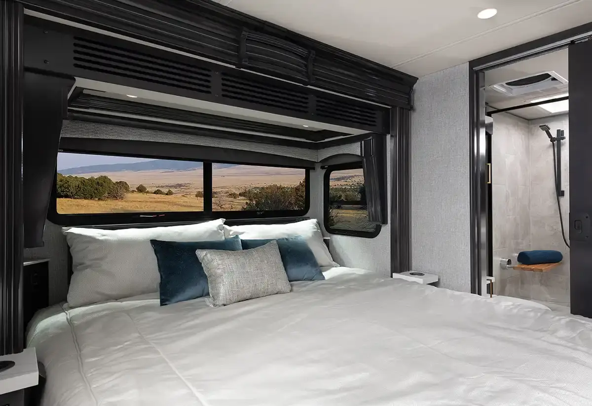 Fleetwood Palisade 40H Class A Diesel highlights: - Solid Hardwood Cabinetry - Bath and a Half - XL Hand-Laid Tile Shower - Fireplace - Exterior TV Travel in comfort and confidence with the Palisade 40H, a luxury diesel coach designed to make every destination feel like home. Inside, you’ll find beautiful solid hardwood cabinetry paired with heated porcelain tile flooring for a refined and welcoming atmosphere. Solid surface countertops and residential-style appliances provide both elegance and everyday functionality, making meal prep on the road simple and enjoyable. The spacious bath features an impressive XL custom hand-laid tile shower, offering a spa-like experience wherever you roam. A convenient stackable washer and dryer add practicality for extended trips, allowing you to travel longer without sacrificing convenience. On the exterior, the custom full-body paint delivers a bold, eye-catching presence, while the Onan generator ensures dependable power when you’re off the grid. Oversized luggage bays and trays offer abundant storage for all your gear, and the top-mount wiper system enhances visibility in changing weather conditions. With thoughtful design details and premium craftsmanship throughout, the 2026 Palisade 40H delivers the comfort, style, and reliability you expect from a luxury Class A diesel motorhome.