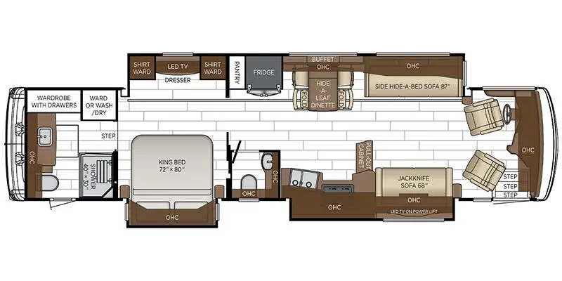 The 2026 Newmar Dutch Star 4081 is a luxurious diesel pusher that redefines comfort and style on the road. At nearly 41 feet long, this RV is a masterpiece of design and engineering, built on a sturdy Freightliner XC-Series chassis and powered by a robust Cummins I6 engine with 450 horsepower and 1250 lb-ft of torque. The spacious interior is enhanced by three slides, providing ample room for relaxation and entertainment. The front living area features a jackknife sofa and a side hide-a-bed sofa, perfect for accommodating up to six sleepers. The centerpiece is a stunning king-sized bed in the center bedroom, ensuring restful nights after a day of adventure. Step into the heart of the Dutch Star, where a center kitchen awaits with top-of-the-line amenities, including a two-burner cooktop and a full-size electric refrigerator. The convection cooking capability and hide-a-leaf dinette make meal preparation and dining a delight. The rear and center bath areas are thoughtfully designed with high-quality fixtures and a washer/dryer for added convenience. With a fresh water capacity of 105 gallons and a powered retractable awning, this RV is ready for extended journeys. Whether you're cruising down the highway or parked at a scenic spot, the Dutch Star 4081 offers unmatched luxury and functionality. For more details, visit your nearest General RV dealership.