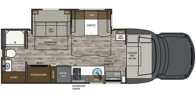 Experience the ultimate in luxury travel with the 2025 Renegade Veracruz 30VRM. This elegant motorhome is built on the robust Ford F550 chassis and powered by a mighty Power Stroke V8 engine, delivering 330 horsepower and 825 lb-ft of torque. Its sleek design is complemented by a powered retractable awning, making outdoor relaxation effortless. Inside, the Veracruz offers a spacious layout with a front kitchen, center living area, and rear bath, ensuring comfort and convenience for up to six travelers. The full-size electric refrigerator and convection cooking options make meal preparation a breeze, while the cozy dinette and jiffy sofa provide ample seating for dining and lounging. The Veracruz 30VRM's thoughtfully designed interior includes a versatile Murphy bed and a cozy cabover bed, offering flexible sleeping arrangements. The rear bath is equipped with a plastic/glass shower for a refreshing experience. With a generous fresh water capacity of 75 gallons and ample gray and black water storage, extended adventures are a delight. This diesel-powered beauty also boasts a remarkable tow capacity of 12,000 pounds, making it perfect for those who love to bring along additional toys or trailers. Whether you're embarking on a cross-country journey or a weekend getaway, the Renegade Veracruz 30VRM ensures every mile is traveled in style and comfort. For more details, visit your nearest General RV Dealership.