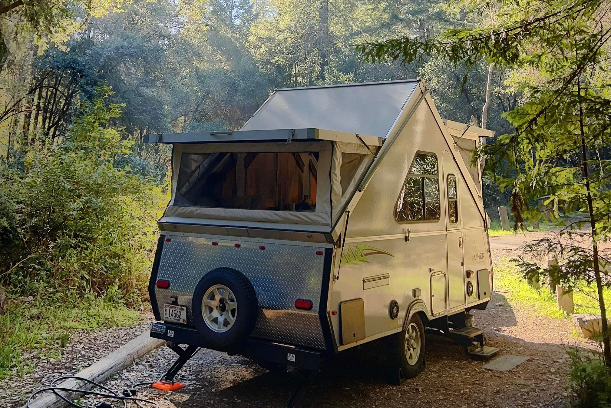 A-frame campers are made with fold-down roof panels that form an "A" shape when set up. Because of their compact size, they're super lightweight and easy to travel with.