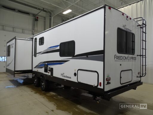 With any Freedom Express Ultra Lite travel trailer by Coachmen you will appreciate quality construction materials, such as vacuum bonded walls with Azdel composite, a 3/4 gel coated fiberglass cap with an automotive glass windshield, and a heated enclosed underbelly. Each model also features Tufflex PVC roofing, front rock guard, and E-Z Lube axles for smooth towing. Inside, you'll find kitchen backsplash, hidden hinge cabinetry, and wear-resistant vinyl flooring throughout. The power tongue jack included with the Ultra Lite Express Pack will make set-up a breeze, and each model includes back-up camera prep and they are Freedom solar ready if you plan to go off-grid. Enjoy lightweight camping with a Freedom Express Ultra Lite travel trailer today!