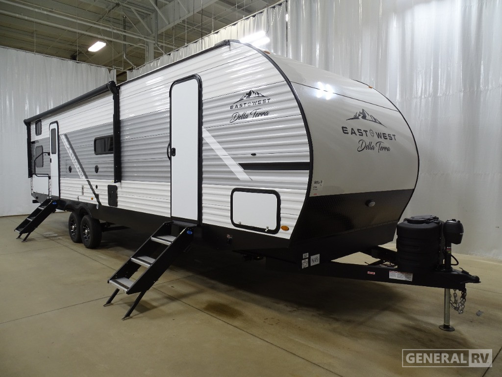 Experience the ultimate in family-friendly travel with the 2024 EAST TO WEST Della Terra 300DB. This spacious RV is designed to comfortably accommodate up to 10 sleepers, making it perfect for family adventures or group getaways. The floorplan boasts a luxurious king-size bed in the front bedroom, ensuring a restful night's sleep. The double bunk beds and convertible options provide versatile sleeping arrangements, catering to all your needs.