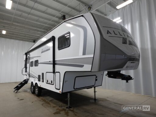 Welcome to the 2025 Alliance RV Avenue 26RD, where comfort meets adventure in a beautifully designed package. This fifth wheel is perfect for families or couples seeking a spacious and versatile home on wheels. At nearly 29 feet in length, the Avenue 26RD offers a harmonious blend of luxury and practicality. The rear living area is a cozy retreat with a plush convertible sofa and a dinette, perfect for relaxing or entertaining guests. The center kitchen is well-equipped with a three-burner cooktop and a full-size electric refrigerator, ensuring you have everything you need to whip up a delicious meal on the road.