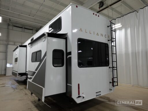 Step into the future of luxurious travel with the 2025 Alliance RV Benchmark 42LFT. This stunning fifth wheel is designed for those who crave both adventure and comfort. With a spacious layout that can comfortably sleep six, it's perfect for family trips or entertaining friends. The front living area is a masterpiece of design, featuring dual recliner theater seating and a cozy fireplace, creating an inviting space to relax after a day of exploration. The central kitchen is equipped with a full-size electric refrigerator and a four-burner cooktop, ensuring you have everything you need to whip up a gourmet meal on the road.