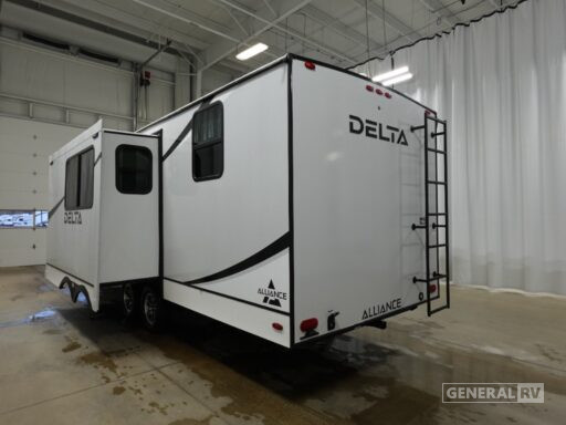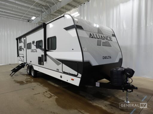The Delta Ultra Lite travel trailers by Alliance RV are perfect for those looking for a lighter tow weight! The fully functional oversized atrium windows will let more natural light in, and the carpet free interior will be appreciated after a weekend at the lake. There are also magnet catches on all cabinets, soft close cabinet doors, and a kitchen toe kick with LED accent lighting. The exterior includes a pass-through storage for your gear, multiple temperature controlled spray ports, exterior awning controls, and Goodyear Endurance tires. Start a new adventure today in a Delta Ultra Lite travel trailer!