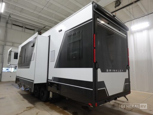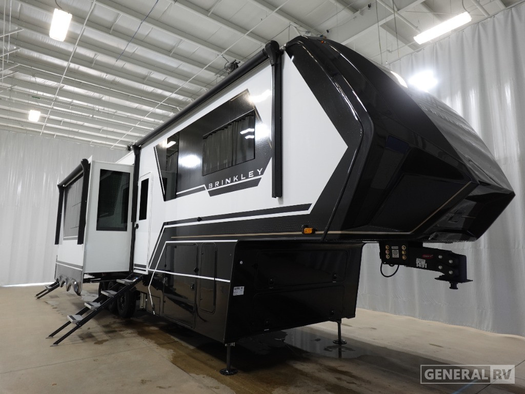 Step into the future of RV living with the 2025 Brinkley Model G 3250. This luxurious fifth wheel is designed to be your home away from home, offering a spacious and thoughtfully laid-out interior that comfortably sleeps up to five guests. With a queen and an optional king bed, plus a cozy bunk, everyone will find their perfect spot to unwind after a day of adventure. The heart of this RV is its center kitchen, equipped with a full-size electric refrigerator and a four-burner cooktop, making meal prep a breeze. The convection cooking feature ensures you can whip up your favorite dishes with ease.