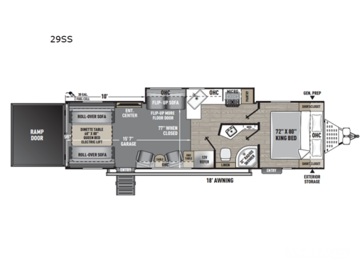 The heart of this RV is its center kitchen, equipped with a full-size electric refrigerator and a three-burner cooktop, perfect for whipping up your favorite meals on the road. The 18-foot powered retractable awning creates an inviting outdoor space, perfect for relaxing after a day of adventure. With a generous 98-gallon fresh water capacity and ample storage, the Adrenaline 29SS ensures you’re well-prepared for extended journeys. Whether you're hitting the open road or setting up camp, this RV is designed to elevate your travel experience. For more details or to see it in person, visit your nearest General RV dealership.