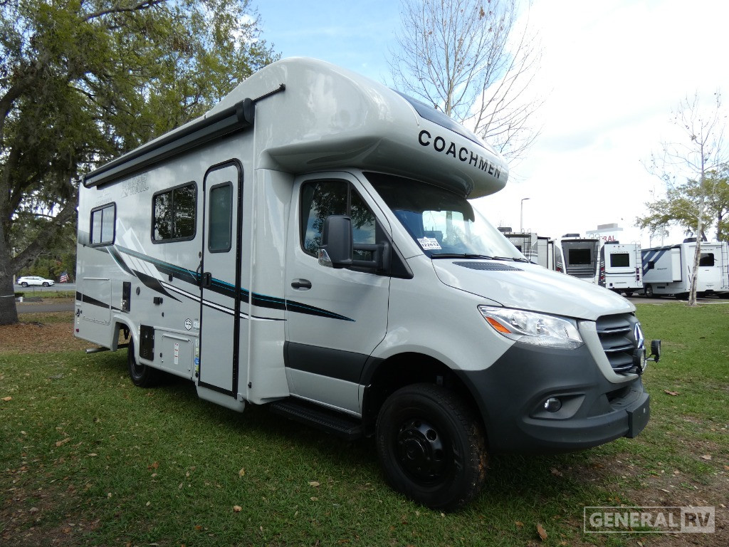 Each one of these eco-friendly Coachmen RV Cross Trail XLS Class C diesel motorhomes are ready for an adventure when you are! They are built on a Mercedes-Benz Sprinter chassis and automatic 7G-Tronic transmission. With a 3.6kw propane generator and 200W solar panel, you can go off the grid. The exterior LED Halo taillights help others see you better at night and the back up camera helps prevent any bumps or dings. Play your favorite tunes with the touchscreen dash radio and Omni directional TV/FM/AM antenna lets you watch your favorite movies. The towing hitch comes with a 7-way plug for easy hook up. Come see all the other features these units have to offer!