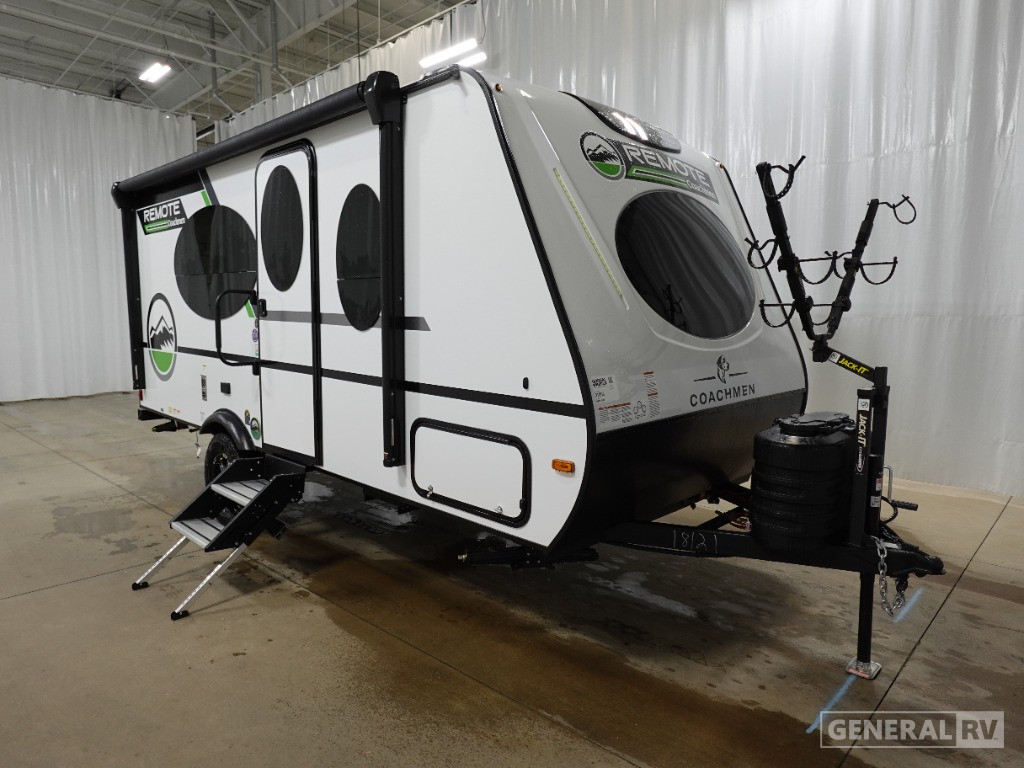 Discover the 2025 Coachmen Remote 18R, where adventure meets comfort in a compact yet versatile travel trailer. Perfectly designed for families or small groups, this RV offers sleeping accommodations for up to four, with a cozy queen-sized Murphy bed and convertible seating area. The innovative design includes double bunks, ensuring everyone has their own space to relax after a day of exploration. The center kitchen, equipped with a two-burner cooktop and mid-size refrigerator, provides all the essentials to whip up your favorite meals on the road.