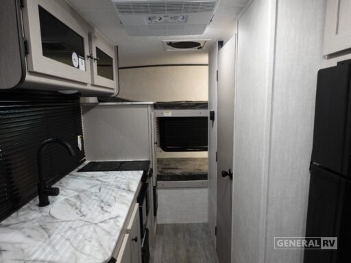 The thoughtful layout of the 18R floorplan maximizes every inch of its 20.67-foot length. The front living area transforms effortlessly, while the center bath with a convenient curtain shower ensures privacy and functionality. Enjoy the great outdoors under the 13-foot powered retractable awning, perfect for those sunny days or starry nights. With ample storage, all-terrain tires, and a robust cargo capacity, this RV is ready to take you wherever your heart desires. For more details, visit your nearest General RV dealership.