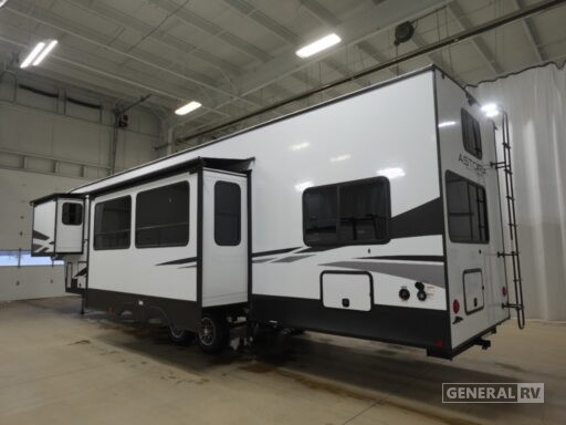 The Astoria Platinum 3603LFP is as functional as it is stylish. With its three slides, the interior feels open and airy, while the dual awnings provide ample outdoor living space. The thoughtfully designed bathroom includes a walk-in shower with a skylight, ensuring a refreshing experience. This model is prepped for a washer and dryer, adding to its convenience for extended trips. With ample storage throughout, including pass-through storage and a pantry, you’ll have plenty of room for all your travel essentials. Ready to explore this exceptional RV further? Visit your nearest General RV dealership today!