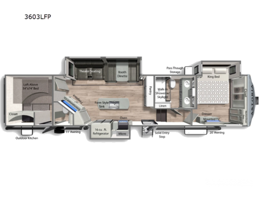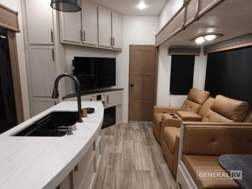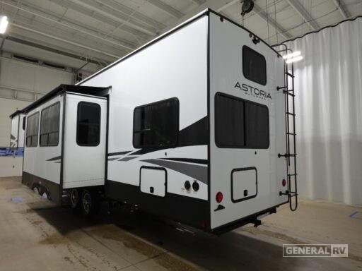 The Astoria Platinum 3603LFP is as functional as it is stylish. With its three slides, the interior feels open and airy, while the dual awnings provide ample outdoor living space. The thoughtfully designed bathroom includes a walk-in shower with a skylight, ensuring a refreshing experience. This model is prepped for a washer and dryer, adding to its convenience for extended trips. With ample storage throughout, including pass-through storage and a pantry, you’ll have plenty of room for all your travel essentials. Ready to explore this exceptional RV further? Visit your nearest General RV dealership today!