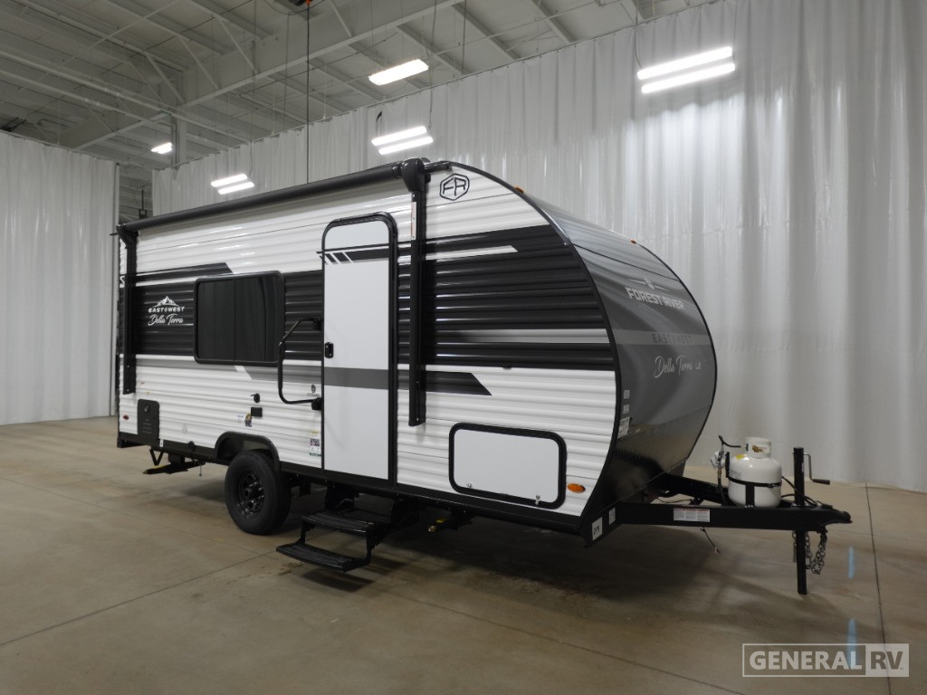 The center kitchen is equipped with a two-burner cooktop and full-size electric refrigerator, ensuring you can whip up delightful meals on the go. The rear bath features a convenient 24" x 40" walk-in shower with a curtain, adding a touch of luxury to your travels. Enjoy the great outdoors under the 12-foot powered retractable awning, perfect for relaxing after a day of exploration. With ample storage, including pass-through compartments, you'll have plenty of space for all your gear. Discover the Della Terra LE 160RBXLE at your nearest General RV Dealership and start planning your next adventure today!