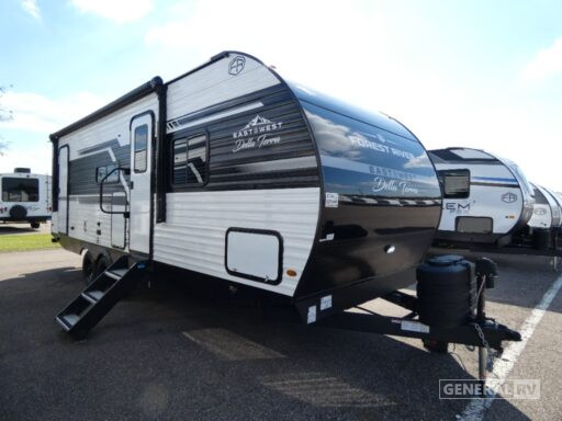 Experience the perfect blend of comfort and adventure with the 2025 EAST TO WEST Della Terra 241BH. This RV is designed to be your home away from home, featuring a spacious layout that can accommodate up to eight guests. The front bedroom offers a luxurious king bed, while the double bunks and convertible seating ensure everyone has a cozy place to rest. The center kitchen is equipped with a three-burner cooktop and a full-size electric refrigerator, making meal prep a breeze. Enjoy family dinners at the booth dinette, which also converts into an additional sleeping area.