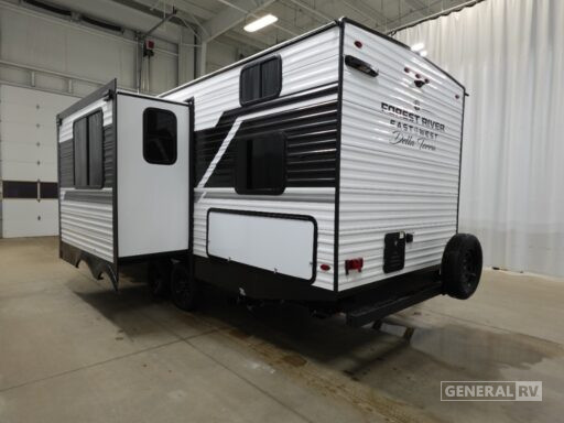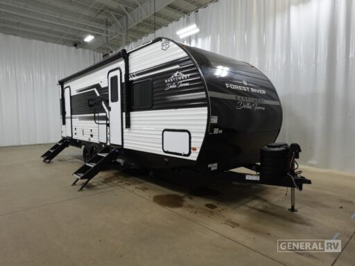 The Della Terra 241BH is crafted for convenience and relaxation. The rear bath, complete with a shower curtain, provides privacy and comfort. Outside, the 16-foot powered retractable awning creates a perfect shaded area for outdoor enjoyment. An outdoor kitchen with a fridge and pull-out griddle adds to the versatility, making it easy to entertain under the stars. With ample storage, including pass-through and exterior compartments, you can bring along all your essentials. The automatic heater ensures a cozy interior on cooler nights, making this RV a perfect companion for all your travels. For more details or to explore this model in person, visit your nearest General RV dealership.