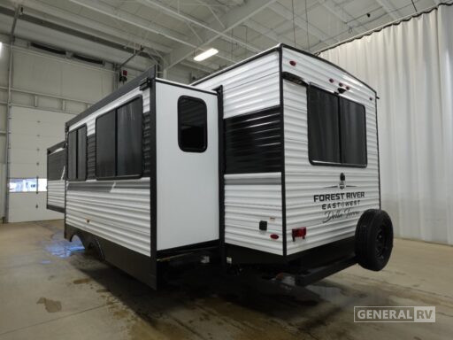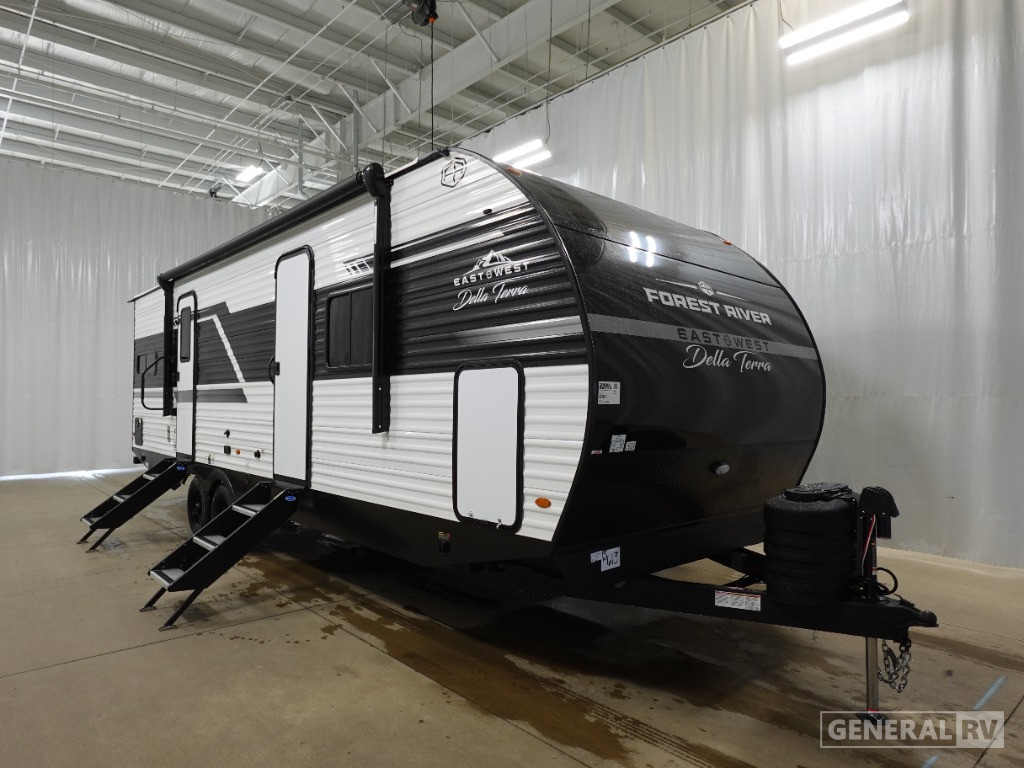 Experience the perfect blend of comfort and style with the 2025 EAST TO WEST Della Terra 263RK. This travel trailer is designed for those who cherish both adventure and relaxation. Imagine unwinding in the spacious center living area, where a cozy jiffy sofa and booth dinette await, perfect for family gatherings or a quiet evening by the fireplace. The rear kitchen, equipped with a three-burner cooktop and full-size electric refrigerator, offers ample space for culinary creativity, making meal prep a breeze on the road.
