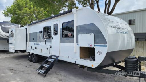 The Salem Platinum travel trailers are packed with hassle-free camping amenities! There are a variety of floorplans to choose from between three different regions. The heated and enclosed Accessibelly will help protect against the elements and debris during transport, and the exterior fiberglass is sure to be eye-catching! There are stylish roller shades inside, along with updated backsplash, elegant curtain rods and curtains, plus many more interior comforts! Choose a Salem travel trailer today for quality and value!