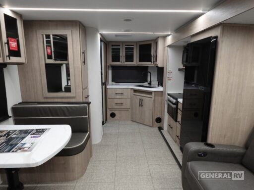 The heart of this RV is the thoughtfully designed kitchen, equipped with a mid-size refrigerator and a three-burner cooktop, perfect for whipping up your favorite meals on the road. Enjoy your culinary creations in the booth dinette or relax in the plush theater seating, all under the expansive 18-foot powered retractable awning that extends your living space outdoors. With ample storage, including an unobstructed pass-thru compartment, and a universal docking station, the Imagine XLS 22MLE ensures that every journey is both convenient and memorable. For more details, visit your nearest General RV dealership and embark on your next adventure in style.