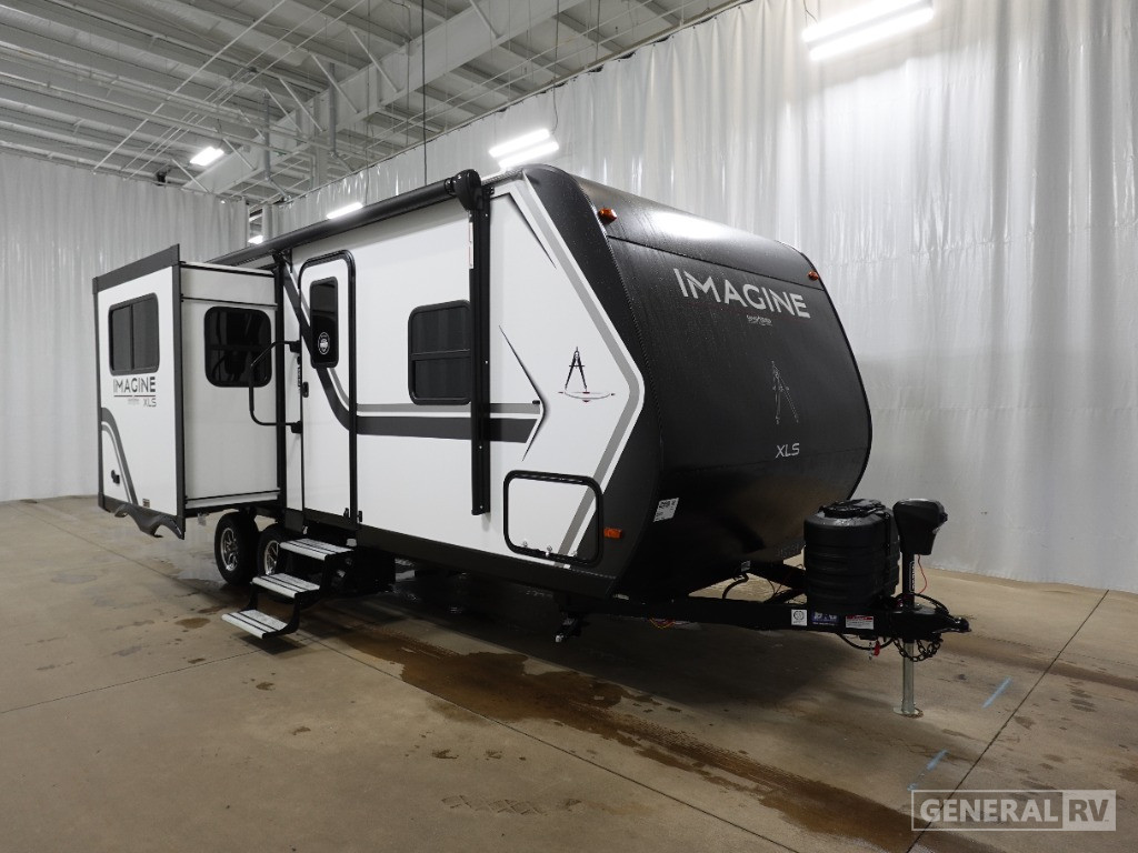 Let your imagination run wild with the possibilities that the Grand Design Imagine XLS travel trailer can provide! The Imagine XLS has been built with oversized tank capacities, an extra-large 2" fresh water drain valve, a ducted A/C system, a power tongue jack, and a heated and enclosed underbelly with suspended tanks. There is a designated heat duct to the subfloor and a residential ductless heating system throughout.For outdoor adventures, the electric awning with LED lights will enable you to stay protected, and the Tuff-Ply pass-thru flooring will withstand your many adventures. You will also love the XLS Solar Package that comes with a 180W roof mounted solar panel, a 40 Amp charge controller, a 12V 10 cu. ft. refrigerator, and roof mounted quick connect plugs!