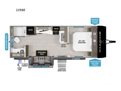 This Imagine XLS travel trailer was constructed just for you and your significant other! It has all of the essentials a couple could need, like a full rear bathroom with a residential walk-in shower, a theater dinette with aremovable table where you can eat your meals, a full kitchen with a microwave and three-burner range with an oven, and a private bedroom with a walk-around queen-size bed so that both of you have your own side. There are a couple of extras that will make your time away even more special, like the LED HDTV, flip-up countertop extension, and exterior spray port!