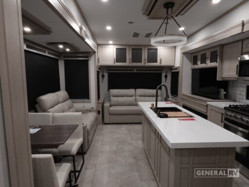 With an 81-gallon fresh water capacity and generous gray and black tank sizes, the Solitude 370DV is built for extended stays. The dual powered retractable awnings provide ample outdoor space to enjoy the fresh air, while the automatic heater keeps you warm on cooler nights. Visit your nearest General RV dealership to explore this masterpiece in person and start your journey in style.