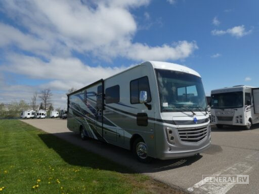 The Eclipse 34J is not just about comfort—it's about convenience and style. The rear bedroom offers privacy and tranquility, while the center bath with a plastic/glass shower adds a touch of modern elegance. Enjoy outdoor living under the expansive 22 ft. powered retractable awning, complete with an exterior entertainment center for those perfect evenings under the stars. Built on a robust Ford F53 chassis with a powerful 335 horsepower engine, this RV ensures a smooth and reliable journey. With its impressive towing capacity and ample storage, the Eclipse 34J is ready to take you and your loved ones on unforgettable adventures. For more details, visit your nearest General RV dealership.