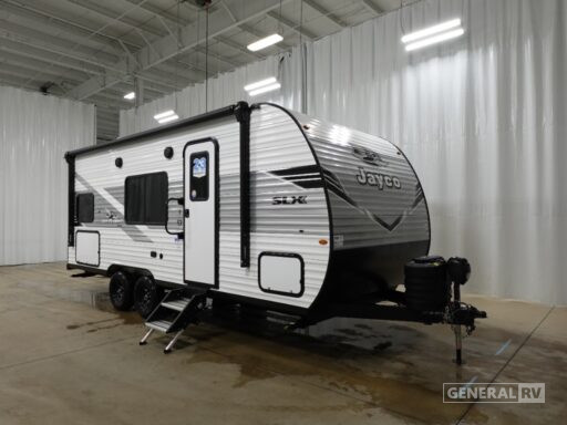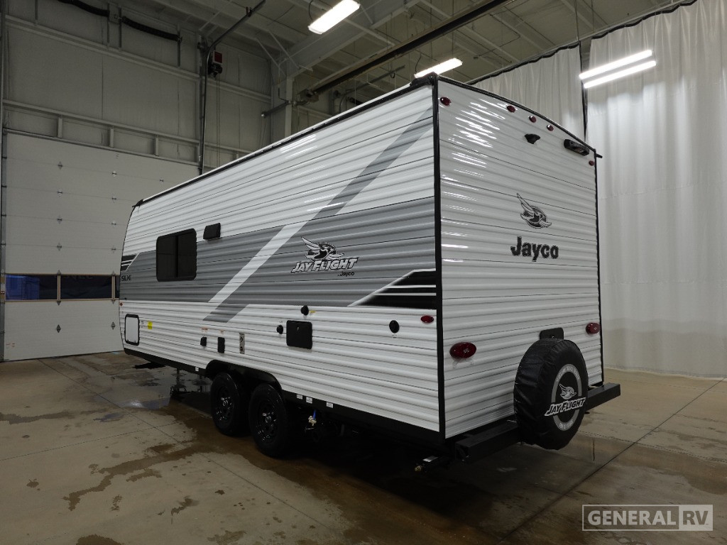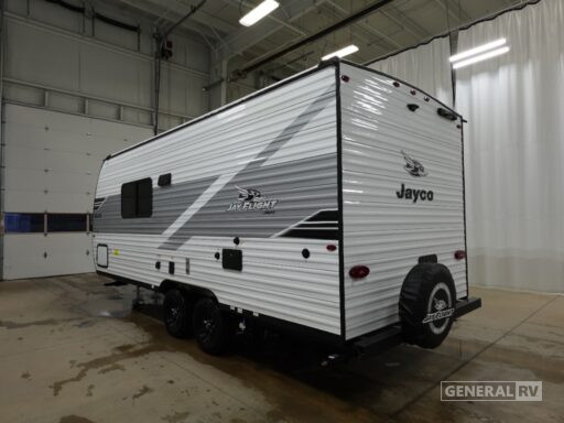 The rear bath offers privacy and convenience with its shower and curtain, while the 13-foot powered retractable awning extends your living space to the great outdoors, perfect for enjoying the fresh air. Built with quality and durability in mind, the Jay Flight SLX features nitrogen-filled radial tires for a smooth ride and two LP tanks to keep your adventures fueled. With a generous cargo capacity of 1830 pounds and a fresh water capacity of 84 gallons, this travel trailer is ready for extended getaways. Discover the freedom of the open road with the Jayco Jay Flight SLX 211MB, where every journey is a new adventure. For more information, visit your nearest General RV Dealership.
