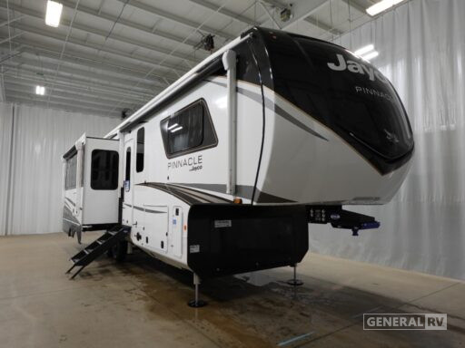 Retreat to the front bedroom, where a king-size bed awaits for restful nights. The generous walk-in shower in the center bath provides a spa-like experience, enhanced by the convenience of washer/dryer prep. With ample storage throughout, including flip-top storage and a pantry, you'll have all the space you need for your adventures. The dual awnings extend your living space outdoors, perfect for enjoying the fresh air and scenic views. With a robust cargo capacity and a tow capacity of 3000 lbs, the Pinnacle 32RLTS is ready to take you wherever your heart desires. For more details, visit your nearest General RV dealership and start your journey today!