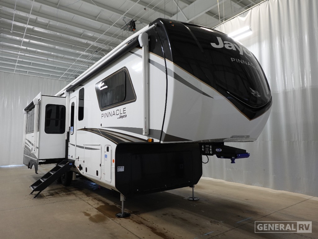 Retreat to the front bedroom, where a king-size bed awaits for restful nights. The generous walk-in shower in the center bath provides a spa-like experience, enhanced by the convenience of washer/dryer prep. With ample storage throughout, including flip-top storage and a pantry, you'll have all the space you need for your adventures. The dual awnings extend your living space outdoors, perfect for enjoying the fresh air and scenic views. With a robust cargo capacity and a tow capacity of 3000 lbs, the Pinnacle 32RLTS is ready to take you wherever your heart desires. For more details, visit your nearest General RV dealership and start your journey today!
