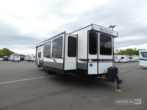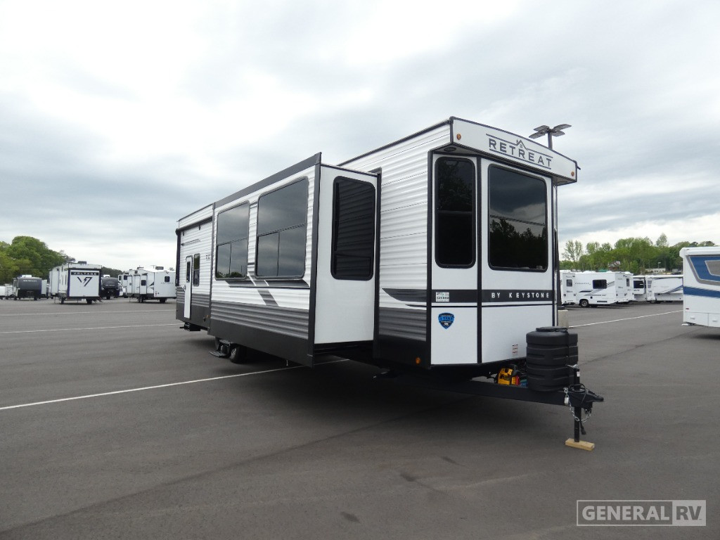 The Keystone Retreat destination trailer is a luxurious retreat in and of itself! You won't need to plan an extensive road trip because the Retreat gives you everything you need in one location. The spacious interiors include residential appliances and plenty of storage spaces for personal belongings, camp gear, food, and more! Whether you choose a Retreat with laminated or aluminum sidewalls, you're sure to enjoy extended stays to the fullest!
