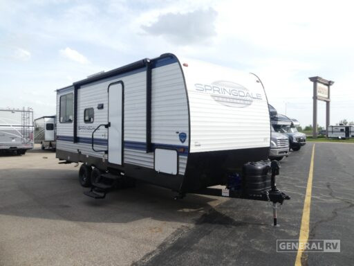 Experience the perfect blend of comfort and convenience with the 2025 Keystone Springdale Classic 200RLC. This charming travel trailer is designed to be your home away from home, offering ample space for up to six sleepers. With a cozy queen bed at the front and two convertible sleeping areas, you and your family can rest easy after a day of adventure. The rear living area is perfect for relaxation, featuring a comfortable sofa and a booth dinette, making it ideal for both dining and unwinding.