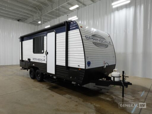 With any Springdale Classic Mini travel trailer by Keystone, you will enjoy lightweight towing thanks to their single-axle! You'll find the XL entry assist handle will make entering and exiting your unit easier than ever, and the power awning will provide protection from the sun as you relax in your camp chairs outside. Each model includes blackout night shades, solid wood cabinet doors and drawers, a shower skylight for more standing room, plus many more interior comforts. There is also a 5,000 BTU sidewall A/C and 20K BTU furnace to keep you comfortable, plus a Girard tankless water heater for endless hot showers!