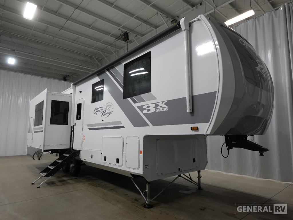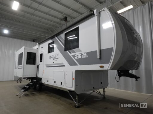 The Open Range 3X 287RLS boasts a luxurious front bedroom featuring a king-sized bed with a power base, ensuring restful nights after a day of exploration. The convenience of a washer and dryer means you can enjoy extended trips without the hassle of finding a laundromat. With a generous fresh water capacity of 75 gallons and ample gray and black water tanks, this RV is ready for extended adventures. The powered retractable awning and outdoor kitchen with a grill hookup enhance your outdoor living experience, making this RV a perfect home away from home. For more details, visit your nearest General RV dealership.
