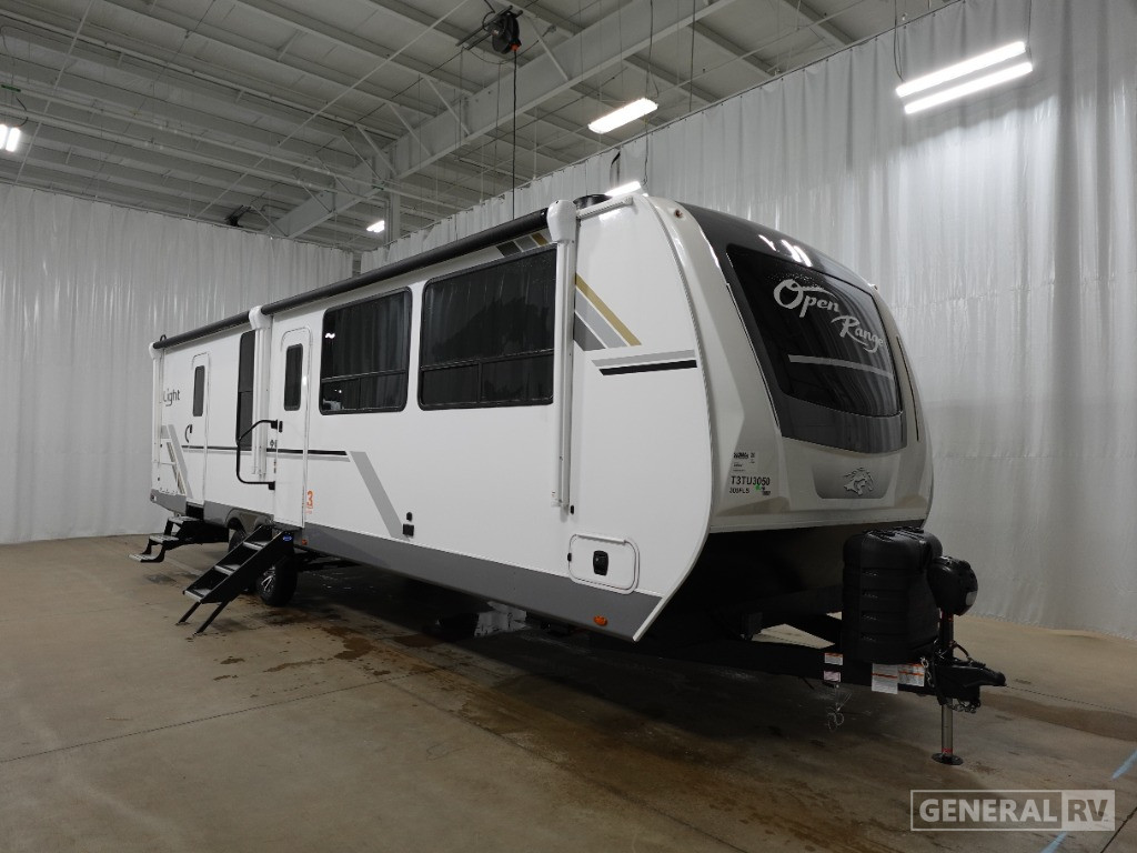 Discover the Open Range Light Travel Trailer, designed for adventurers who long for comfort, with all the amenities of a higher-end RV. When building the Light Travel Trailer, Highland Ridge uses their TuffShell™ lamination process, making your walls stronger and more reliable than the competition. Our molded front cap with led lighting and stone guard protection gives the Light Travel Trailer a high-end look, while protecting the unit from road debris. The Open Range Light is built with the Magnum Roof™ System with the PVC Roofing Membrane, making the roof fully walkable and resistance to tears and punctures. A standard feature is the Xtend Solar I Package, perfect when wanting to camp off the grid and still have the full function of your camper. When ending your day, you can relax and watch your smart entertainment HDTV or turn in for the night by closing your roller night shades and cozy up in your residential style king size bed. The Open Range Light Travel Trailer is feature heavy, but lightweight – giving the best of both worlds.