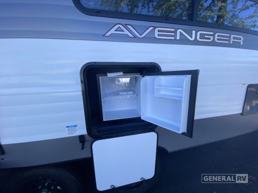 Retreat to the front bedroom, where a comfortable queen bed awaits, flanked by dual wardrobes for your convenience. The rear bath offers privacy and practicality, complete with a shower and plenty of storage space for linens. With a powered retractable awning, you can effortlessly extend your living space outdoors, perfect for enjoying the view or entertaining guests. The Avenger 25MKO’s thoughtful design and modern amenities make it an ideal choice for those who love adventure without compromising on comfort. For more details, visit your nearest General RV dealership.