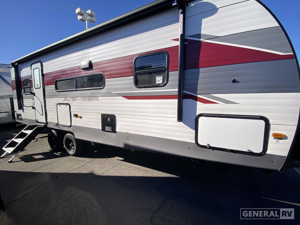 Retreat to the front bedroom, where a comfortable queen bed awaits, flanked by dual wardrobes for your convenience. The rear bath offers privacy and practicality, complete with a shower and plenty of storage space for linens. With a powered retractable awning, you can effortlessly extend your living space outdoors, perfect for enjoying the view or entertaining guests. The Avenger 25MKO’s thoughtful design and modern amenities make it an ideal choice for those who love adventure without compromising on comfort. For more details, visit your nearest General RV dealership.