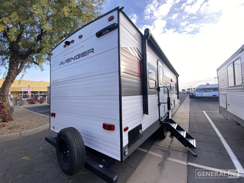 Retreat to the front bedroom, where a comfortable queen bed awaits, flanked by dual wardrobes for your convenience. The rear bath offers privacy and practicality, complete with a shower and plenty of storage space for linens. With a powered retractable awning, you can effortlessly extend your living space outdoors, perfect for enjoying the view or entertaining guests. The Avenger 25MKO’s thoughtful design and modern amenities make it an ideal choice for those who love adventure without compromising on comfort. For more details, visit your nearest General RV dealership.
