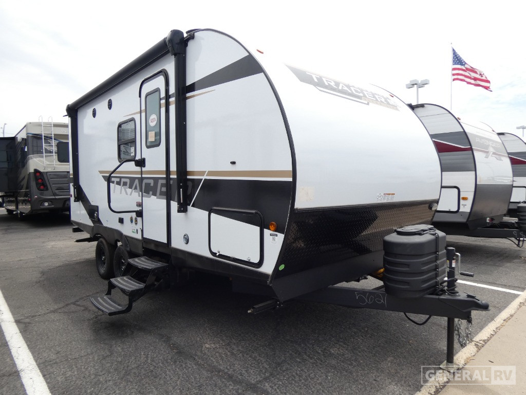 The Tracer LE 190RBSLE comfortably sleeps up to four, thanks to its cozy queen bed and a convertible dinette. The rear bath is thoughtfully equipped with a shower and ample linen storage, offering a private retreat after a day of exploration. Step outside and enjoy the 12.5-foot powered retractable awning, perfect for relaxing in the shade. With a generous cargo capacity and robust tank capacities, this RV is ready to support your adventures, whether you're heading to the mountains or the beach. For more details and to see this fantastic model in person, visit your nearest General RV dealership.