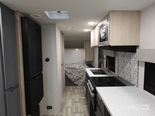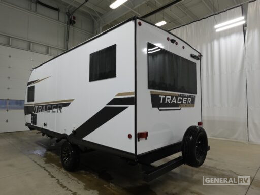 Retreat to the cozy sleeping area that houses a luxurious queen bed, ensuring restful nights under the stars. The center bath provides convenience and privacy, equipped with a shower curtain for a touch of home-like comfort. With ample storage options, including overhead cabinets and pass-thru storage, the Tracer 170RS ensures you have everything you need for your journey. Its lightweight design and single axle make towing effortless, while the robust D rated radial tires promise a smooth ride. Discover the perfect balance of style and functionality with this exceptional travel trailer. For more details or to see it in person, visit your nearest General RV Dealership.