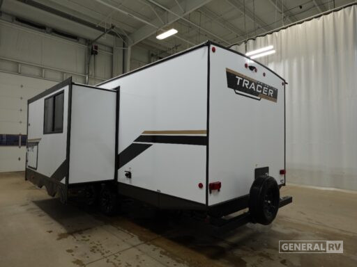 The Tracer 250BH ensures relaxation and entertainment with its inviting theater seating and entertainment center, creating a cozy retreat after a day of exploration. The rear bath, complete with a shower curtain, offers privacy and convenience. With a powered retractable awning, you can effortlessly extend your living space outdoors, creating the perfect spot for morning coffees or evening gatherings.