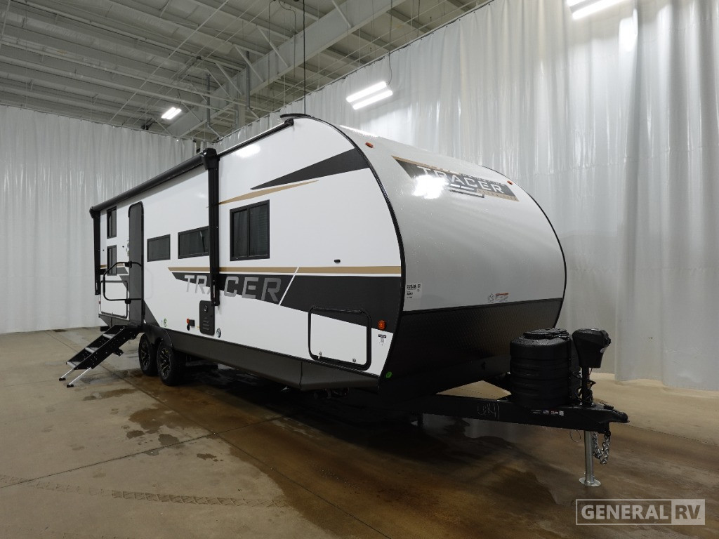 The Tracer 250BH ensures relaxation and entertainment with its inviting theater seating and entertainment center, creating a cozy retreat after a day of exploration. The rear bath, complete with a shower curtain, offers privacy and convenience. With a powered retractable awning, you can effortlessly extend your living space outdoors, creating the perfect spot for morning coffees or evening gatherings.