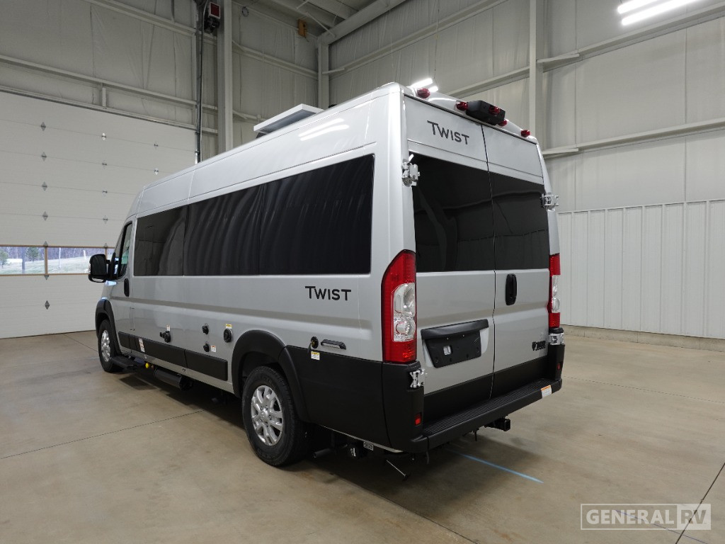 The rear bath is both functional and stylish, featuring a wet bath setup that maximizes space. With a fresh water capacity of 27 gallons and ample gray and black water storage, your journey can be as long as your spirit desires. Built on a robust ProMaster 3500 chassis with a powerful Pentastar VVT V6 engine, the Twist 2LB offers a smooth and reliable ride. Its impressive towing capacity ensures you can bring along all your favorite toys for the ultimate road trip. Ready to embark on your next adventure? Visit your nearest General RV dealership to explore more about the 2025 Thor Motor Coach Twist 2LB!