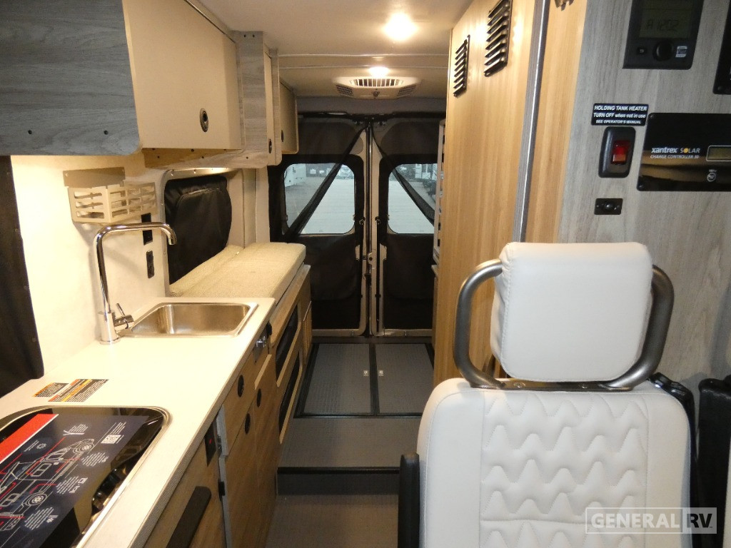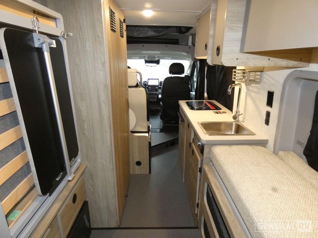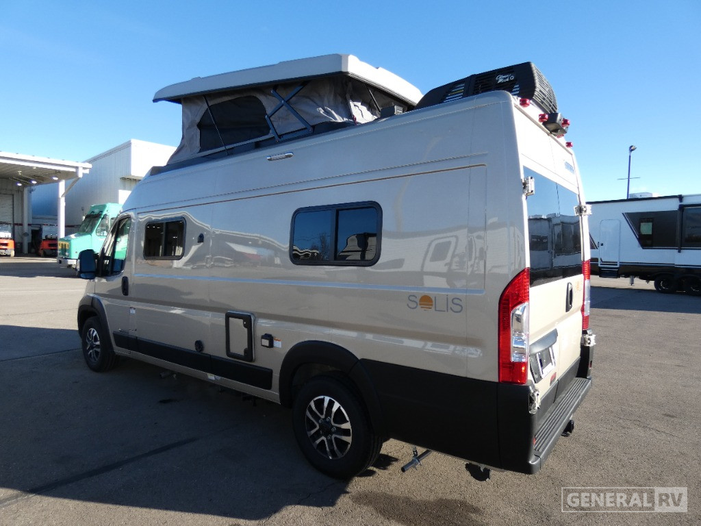 Sleeping arrangements are a breeze with two full-size beds, including a convenient Murphy bed and a pop-top for stargazing nights. The center bath with a wet curtain shower ensures you stay refreshed, while the ample below-floor storage keeps your gear neatly tucked away. Powered by a robust Pentastar VVT V6 engine on a ProMaster 3500 chassis, the Solis 59PX delivers 280 horsepower, ensuring you have the power to explore wherever your heart desires. With a fuel capacity of 24 gallons and a tow capacity of 3,500 pounds, this RV is ready for any journey. Visit your nearest General RV dealership to discover more about this exceptional model and start planning your next adventure!