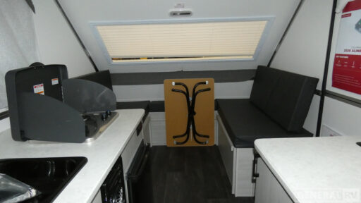 Looking for a camper that you can relax and unwind inside when you aren't exploring outdoors? Need sleeping space for two or three? Well the rear sofa bed in this camper converts into a 56" x 76" bed and the front dinette converts into a 46" x 76" bed. You can prepare delicious meals with the two burner stove, clean up with the sink, and keep your perishables fresh within the 1.7 cu. ft. 12V refrigerator underneath the stove and sink. You might even like to add an optional soft or hard dormer to the front or rear of this unit, and/or the optional Off Road package.