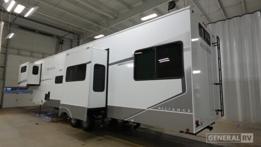 With any Avenue fifth wheel or travel trailer by Alliance RV, you will enjoy more interior space provided by the 8' 5" wide-body construction, and a long list of luxury features. Each is built with Azdel composite sidewalls both inside and out, along with a PVC roof for added strength. There are innovative storage solutions that include hidden storage behind the TV, within end tables and ottomans, and more. Since these units feature no carpet throughout, cleaning will be easier than ever, and there are flush floor slides throughout for seamless living spaces. The Avenue also comes with the OTG Solar Package with a 400 watt solar panel, inverter prep, multiple outlets, and more to keep you charged up!