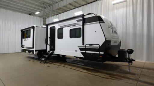 Form and function work together with every one of these Alliance RV Delta travel trailers! They are built with a walk-on roof with a seamless PVC roof covering, Mylar reinforced exterior seals, and a heated and enclosed underbelly to protect your unit. The commercial grade vinyl flooring will be easy to clean, and the oversized atrium windows throughout let in plenty of natural sunlight. With 62 cu. ft. of drop frame pass-through storage, you can bring along all of your essential camping gear plus it has USB charging for more convenience. There are many at home interior conveniences including a Bluetooth speaker, USB charging throughout, and even a pull-out kitchen trash can. Come find your favorite model today!